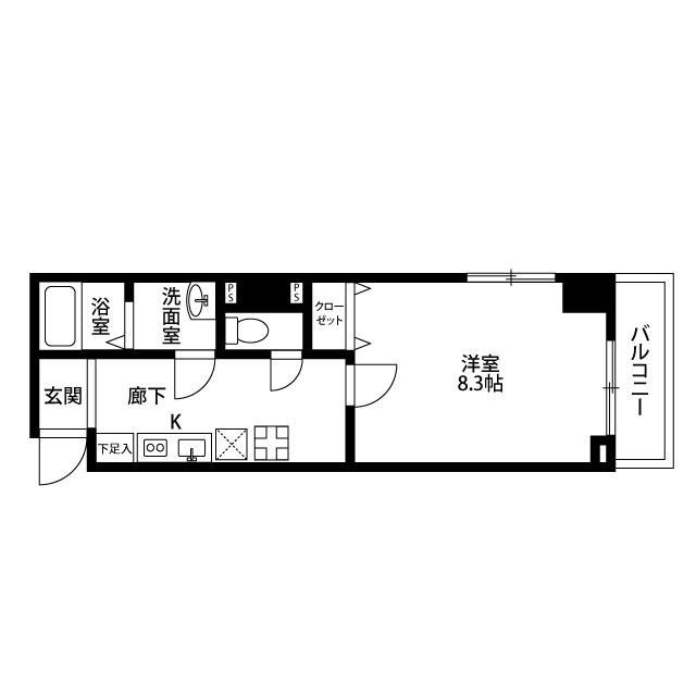 | 間取り | 1K K 1室, 洋 1室 |