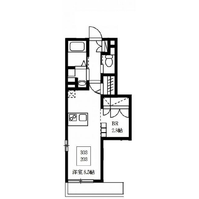 | 間取り | ワンルーム 洋 8.5畳 × 1室, S 2.8畳 × 1室 |
