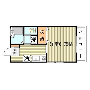| 間取り | 1K 洋 6.7畳 × 1室, K 4.8畳 × 1室 |