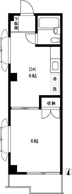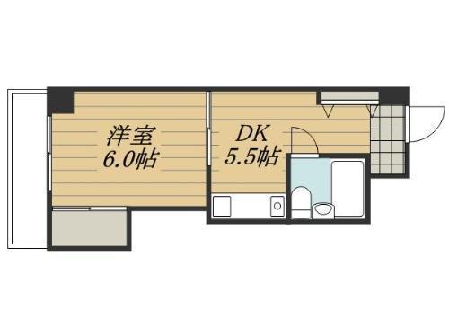 | 間取り | 1LDK(1DK) 和 6畳 × 1室, DK 6畳 × 1室 |